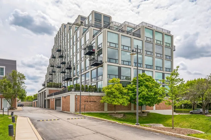 Experience stunning sunsets from this bright, west-facing one-bedroom, one-bath condo featuring an open floor plan with a kitchen overlooking the living and dining areas. The spacious kitchen boasts abundant cabinetry and counter space, perfect for culinary enthusiasts. Bedroom has walk-in closet, provides a comfortable retreat, while large picture windows in the living room fill the space with natural light and scenic views. Enjoy the fresh air on the balcony or take advantage of in-unit amenities like a washer/dryer. Building amenities include an exercise room, bike storage, and additional cage storage. For added convenience, purchase the best parking spot in the building for $25,000. Ideally located just steps from Cottontail Park, the loop, lakes, and a variety of restaurants, with easy access to public transportation and major expressways, this is urban living at its finest.